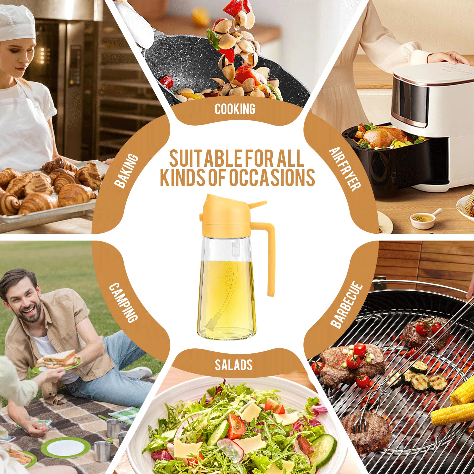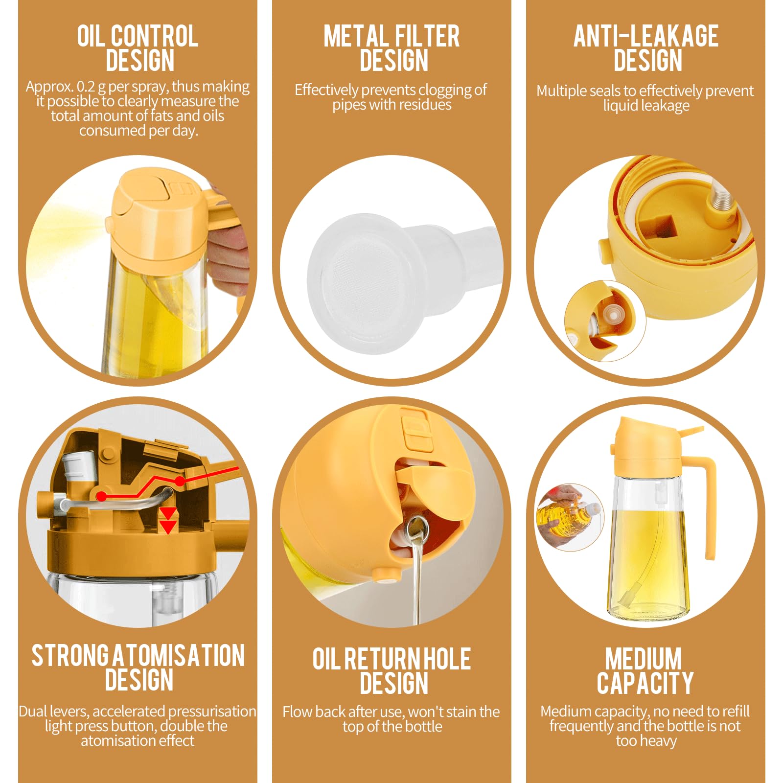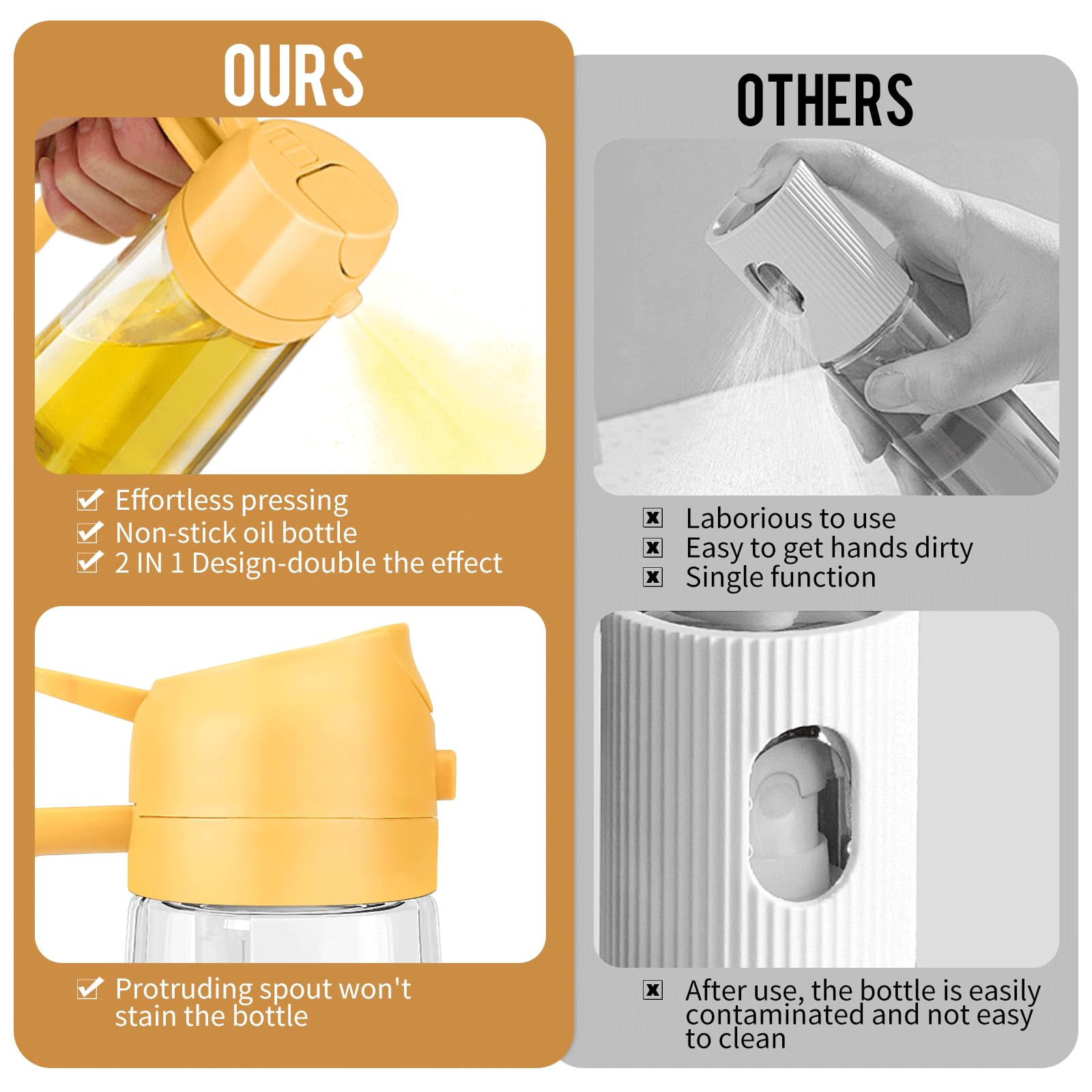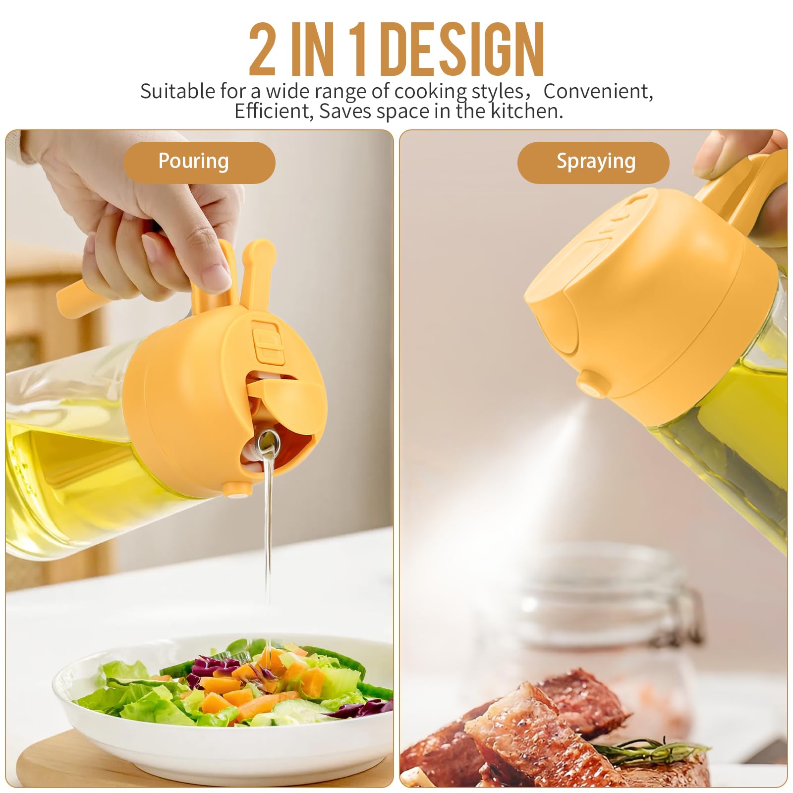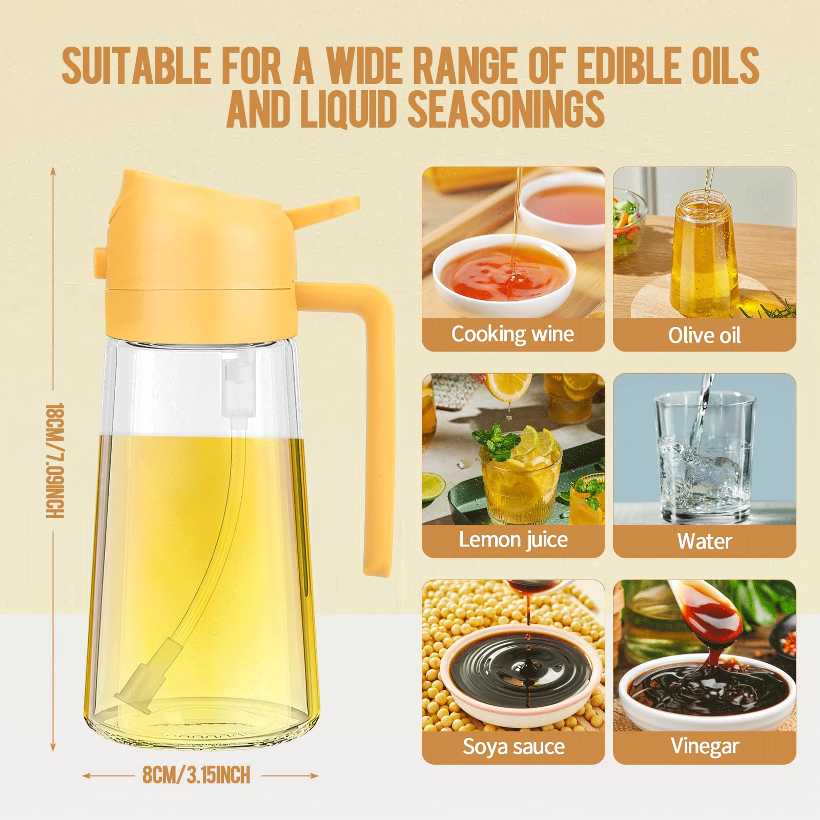 470ml 2 en 1 Dispensador de Aceite y Pulverizador de Aceite, Vertedor Dispensador de Aceite de Oliva para, Cocina, Cocinar,Freidora de Aire,Ensalada. Barbacoa (Negro)